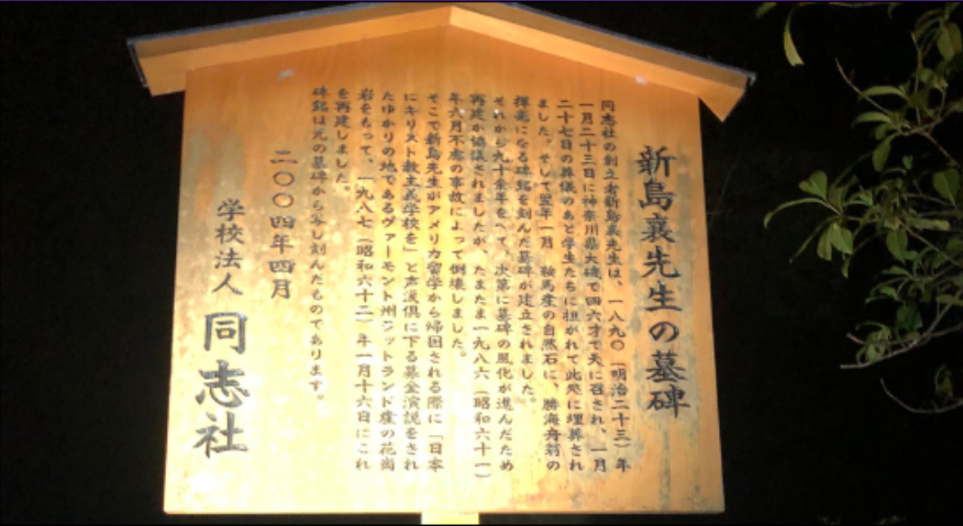 春学期の最終トレの際に、同志社の設立者、新島JOE氏の墓に参りに行く行事。シングルトラックを楽しむこともできる。